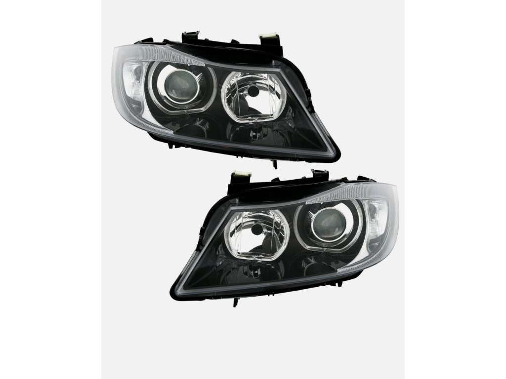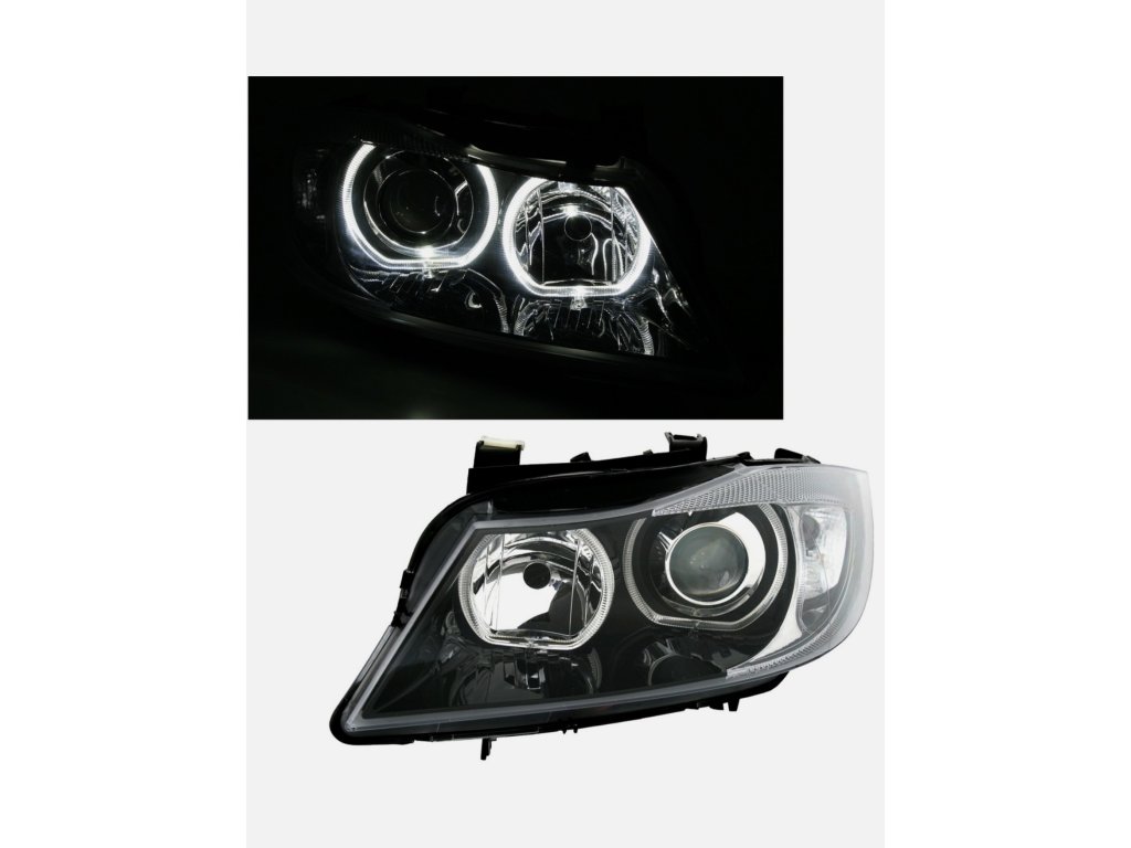 BMW E90, E91 predné svetlá s led Angel Eyes bielymi krúžkami
