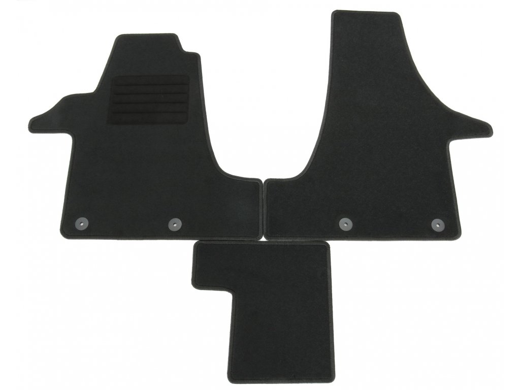 Koberce vhodné pre VW T5, Modelový rok 5/2003-10/2014 + VW T6 / T6. 1, Modelový rok 6/2015-2021 (pre vozidlá s 2 samostatnými sedadlami vpredu, so zapínaním na cvočky, so samostatným krytom tunela).Dodatočné parametre