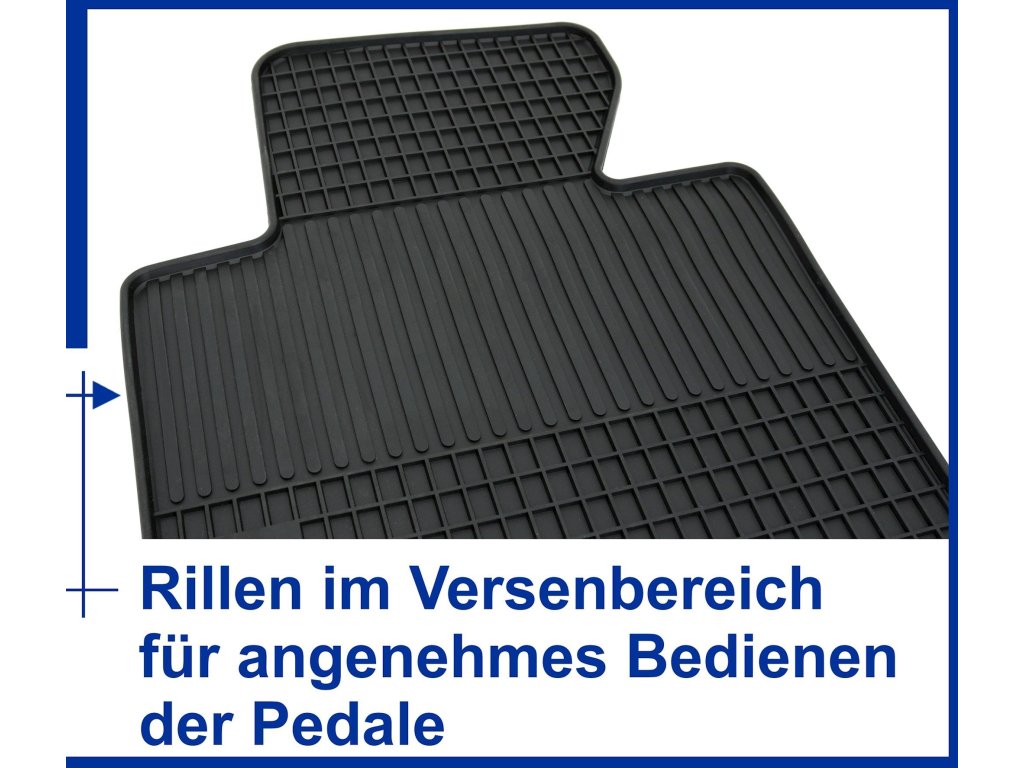 Zvýšený, obvodový okraj a hrebene zabraňujú šíreniu nečistôt a znečisteniu podlahy vozidla.