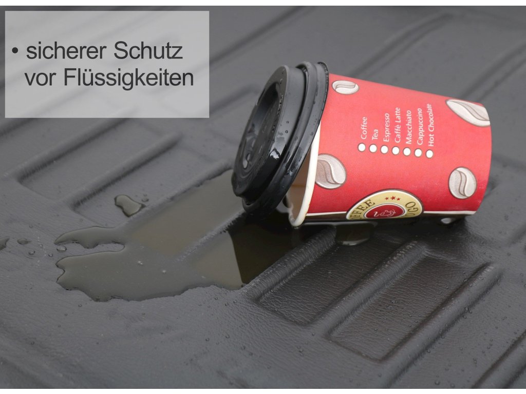 Vysoký, úplne obvodový vystužený okraj udržiava tekutiny na podlahovej rohoži.